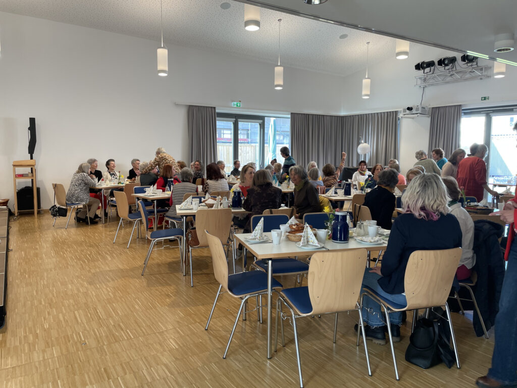 Das Frauenfrühstück am 28.3.2026 stand dieses Mal unter dem Motto „Abenteuer Leben“. Zu Gast war die Referentin Mag. Margit Eichhorn, Psychotherapeutin und seit 30 Jahren Mitarbeiterin bei Campus für Christus in Österreich. Frau Eichhorn erzählte den rund 70 anwesenden Frauen in gemütlicher und frühlingshafter Atmosphäre, die im Vorfeld vom Frühstücksteam gezaubert wurde, von ihrer Arbeit und auch ihrer Berufung für diese Arbeit. Seit 2020 ist sie zudem zwei bis drei Mal im Jahr auf den griechischen Inseln Lesbos und Samos als Therapeutin tätig, zu Corona Zeiten noch im Rahmen von Social Care. Damals war sie für alle psychisch und medizinisch auffälligen Flüchtlinge verantwortlich. Mittlerweile arbeitet sie für die freiwilligen Helfer und Helferinnen in den Flüchtlingscamps.