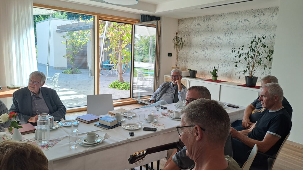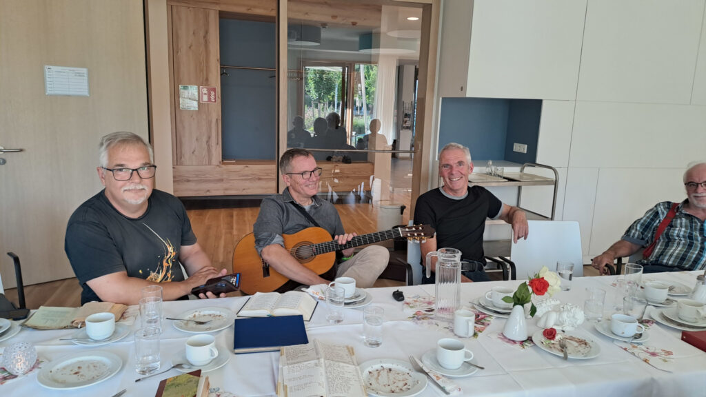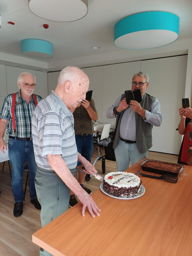 Kaum jemand ist mit unserer Gemeinde auf so vielfältige Weise verbunden wie Adolf Keller. Von den 50er Jahren bis Anfang der 90er Jahre war er eine treibende Kraft in der Jungschar- und Jugendarbeit unserer Gemeinde. Er hat eine ganze Generation junger Menschen in Freilassing geprägt und ist für viele immer noch ein Freund und Vorbild. Er selber möchte solches Lob eher nicht hören, er verweist immer auf Jesus als den Mittelpunkt der Gemeinde. Neben der Jugendarbeit war er auch mehrere Jahrzehnte im Kirchenvorstand unserer Gemeinde, und bis vor zwei Jahren hat er noch die Bargeld-Kasse für das Pfarramt geführt. Kein Wunder also, dass viele seiner Freunde und Weggefährten kamen, um ihm zum 90. Geburtstag zu gratulieren. Bereits einige Tage zuvor und danach erhielt er Besuch von alten Freunden, und am Geburtstag machte ihm der Bürgermeister seine Aufwartung. Adolf ist Träger der Bürgermedallie der Stadt Freilassing, aber auch ohne diesen Anlass wäre Markus Hiebl sicher gekommen, denn er ist auch einer derjenigen, die Adolf durch seinen Einsatz im christlichen Glauben begleiten durfte. (Wer ein PNP-Abo besitzt, kann hier den Bericht über den Besuch nachlesen). Am Nachmittag gab es dann Kaffee und Torte, und es waren einige Freunde aus den vielen Jahrzehnten seines Wirkens gekommen. Pfr. Seißler überbrachte im Namen der Gemeinde seinen Dank und einen Segen, Kai Lieser hatte eine Geburtstagstorte besorgt, und Werner Brunner und Uli Kreuzer sorgten mit ihren Gitarren für ein kurzes Wiederaufleben der Jungschar- und Jugendzeit. Und Adolf, der war glücklich über die vielen Freunde und die Erinnerungen. Vor allem aber sei er froh, dass die Feier nicht mehr so groß wie beim letzten Mal war (gemeint: seine 80er-Feier).
