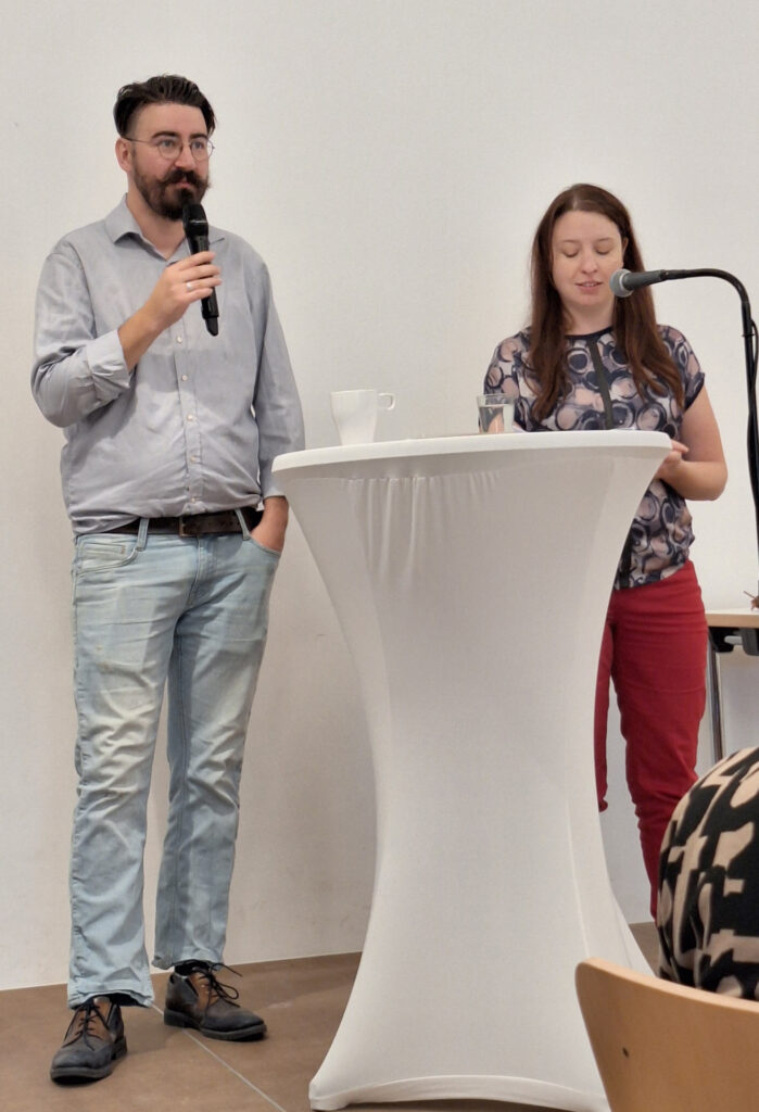 Allerdings brachen die Gespräche schnell ab, als eine junge Frau – die Referentin des heutigen Vortrags Kamille Schmähl – eine junge Amerikanerin – mit ihrem Mann, der heute als Übersetzer fungierte, die Bühne betrat. Kaum vorstellbar, dass diese lebensfrohe Frau und Mutter von zwei kleinen Kindern, derzeit wohnhaft im Landsberger Raum, seit ihrem 9. Lebensjahr unter massiven Angstpanik-Attacken litt. Da auch ihre Mutter und Großmutter darunter litten, akzeptierte sie zunächst diese traumatischen Phasen der Dunkelheit und versuchte sie – so gut es eben ging – zu handhaben. Obwohl christlich erzogen und selber überzeugte Christin gab es zunehmend Zeiten in ihrem Leben, in denen sie sich von Gott verlassen und nicht geschützt fühlte. Angst war nicht nur ein momentanes Gefühl, sondern wurde immer mehr zum ständigen Begleiter.
