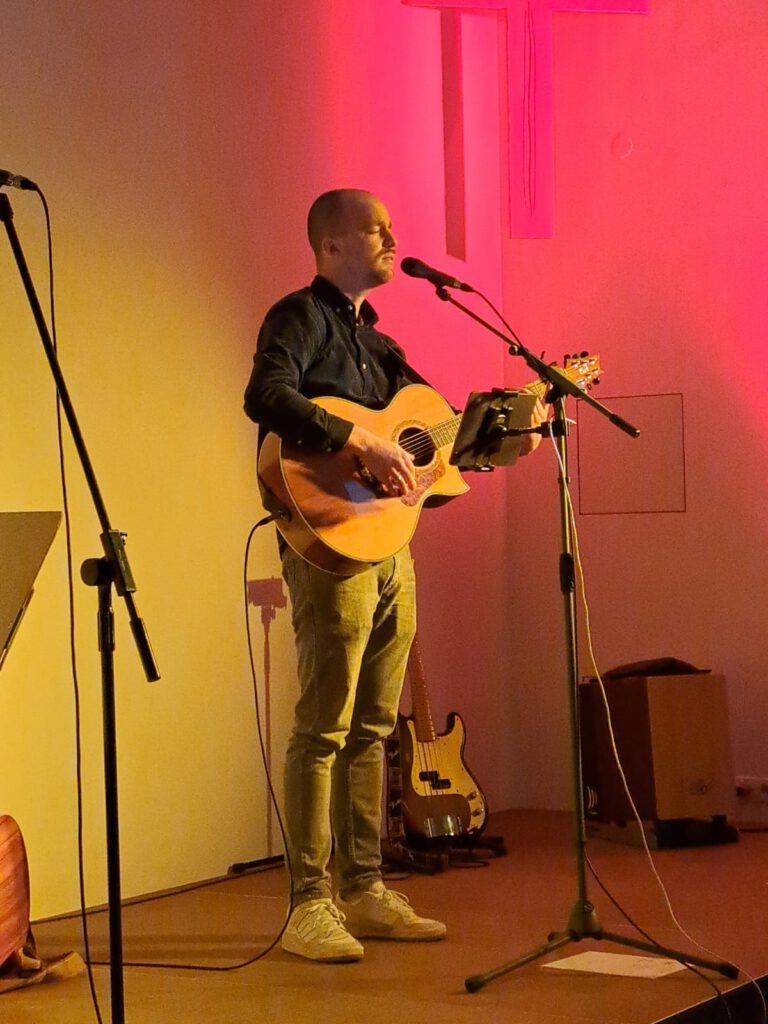Außerdem hatten wir Andi Steinmaßl zu Gast, ein Singer - Songwriter aus der International Christian Fellowship (ICF) in München. Er unterstütze die Gottesdienst Anders Band im Lobpreis und brachte in einem Soloteil der Gemeinde eigene Lieder mit .