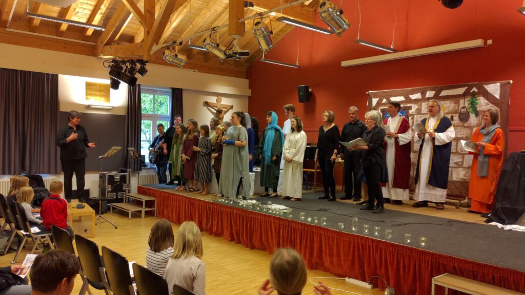 Die Zeit der Proben seit März war voller Widrigkeiten und Hindernisse: Corona-bedingte und andere Ausfälle, Terminüberschneidungen und zahlreiche weitere Hürden stellten alle Akteure immer wieder vor Herausforderungen. Dank ganz viel Herzbluts und Durchhaltevermögens aller Mitwirkenden, vieler tatkräftig helfender Hände, viel Humors und unerschütterlichen Vertrauens in Gottes Liebe, Segen und guten Willen konnten alle Probenpuzzleteile dann doch so zusammengesetzt werden, dass ein schönes, strahlendes Ganzes auf der Bühne zu bestaunen war.