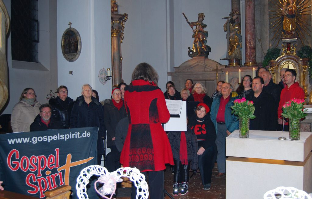 Musikalisch gestaltete der Gospelchor „Gospel Spirit“ unter der Leitung von Anja Hager die Feier. Zum Eingangslied „Come, now ist he time“ betraten Pfarrer Lucian Banko und Helga Jetzlsperger, Kirchengemeinde St. Rupert und Roland Sturm, evangelische Kirche Freilassing, den Altarraum.