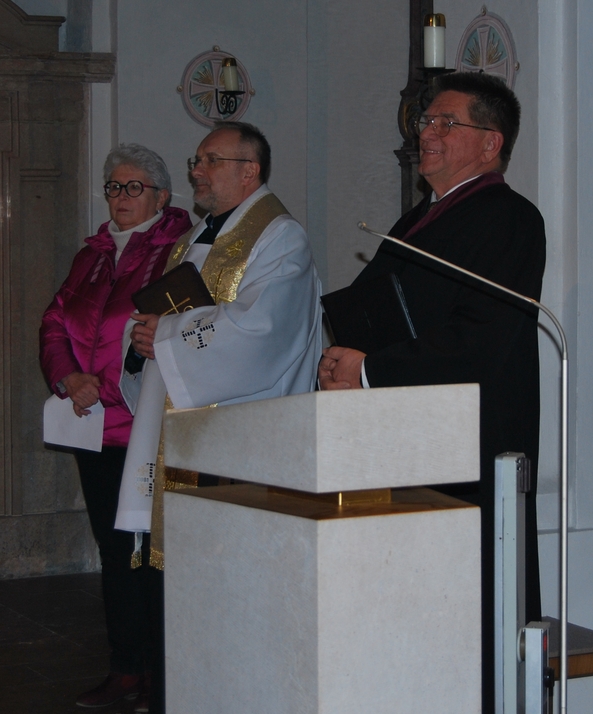 Helga Jetzlsperger und Pfarrer Lucian Banko, Kirchengemeinde St. Rupert; Roland Sturm, evangelische Kirche Freilassing