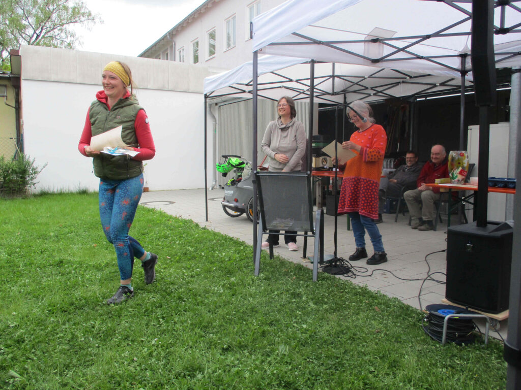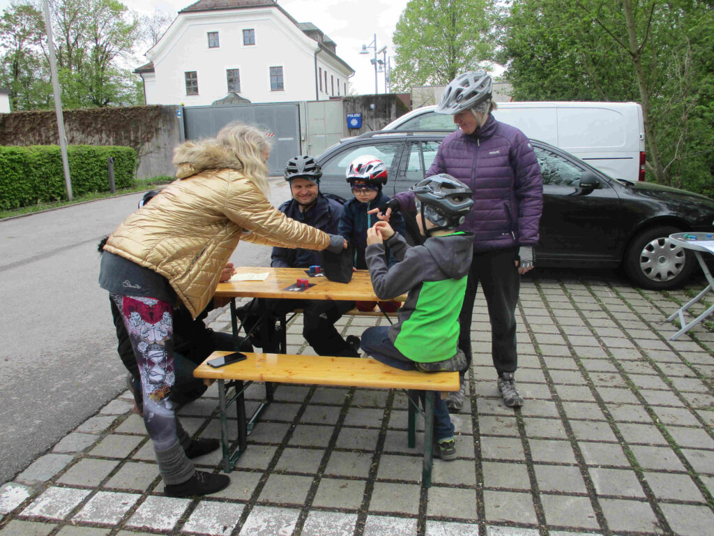Obwohl das Wetter sehr durchwachsen angekündigt war und es in der Nacht noch heftig geregnet hatte, kamen sage und schreibe 19 Teams zur Anmeldung und starteten los. Es gab eine lange Strecke mit 30km und eine Kurzstrecke mit 20km. Unterwegs gab es an neun Stationen verschiedene Aufgaben zu lösen (z.B. Öl-Wattepadweitwurf, Motorikparcours, pantomimisches Personenraten, Lieder gurgeln, Quiz). Dabei kam der Spaß nicht zu kurz. Am späten Vormittag gab es in Mitterfelden eine Stärkung für die Radler.