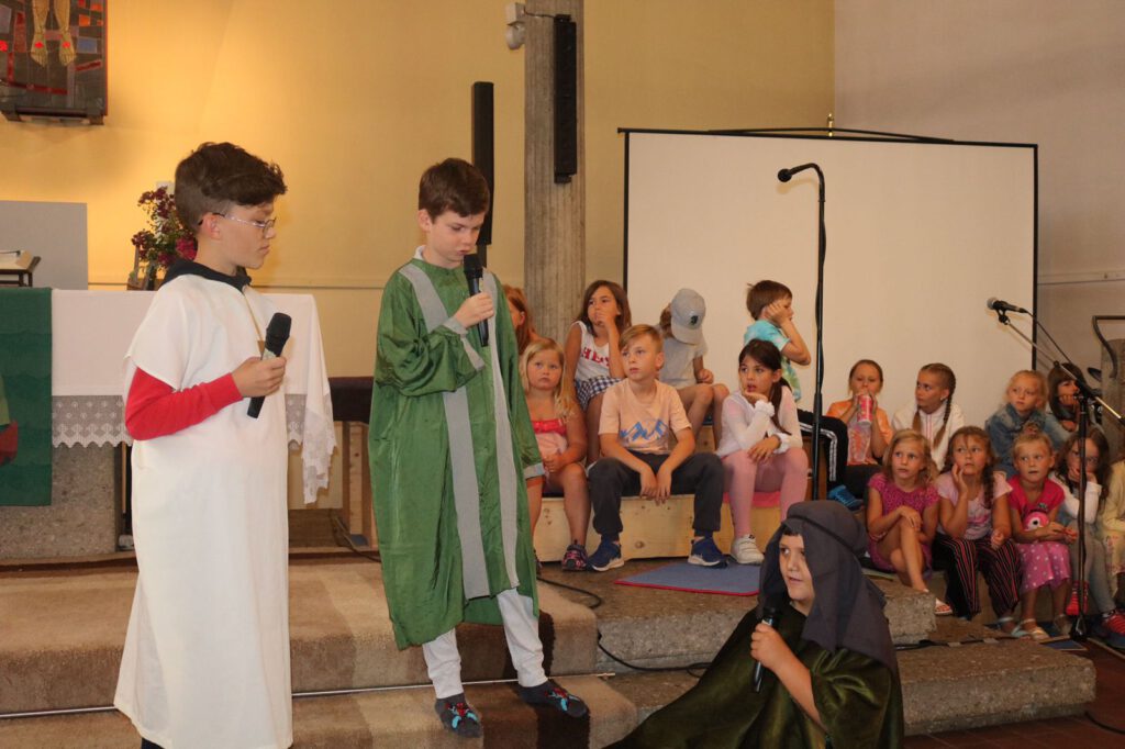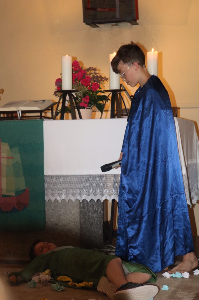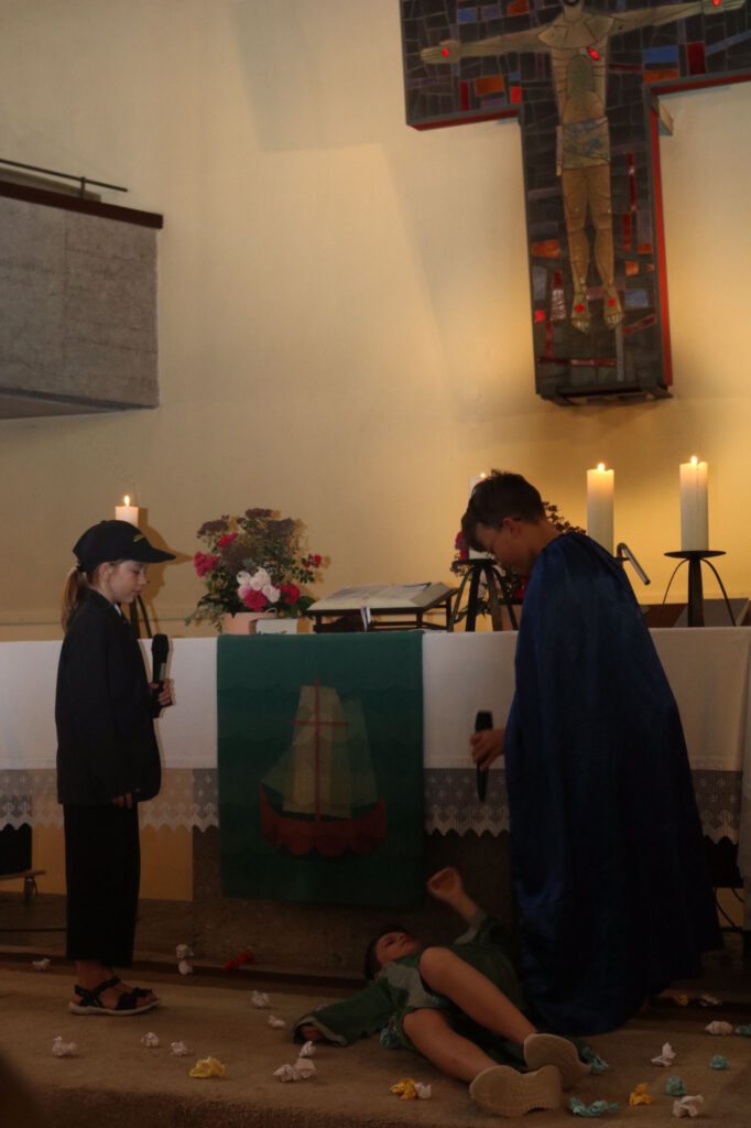 Mehr als 30 Kinder machten mit, um unter der Leitung von Svetlana Flat und ihrem Team das Kindermusical "Paulus - Auf geheimer Mission" von Frank Kampmann einzustudieren. Nach vielen Proben war es am 3. Juli soweit. Das Musical wurde im Rahmen des Gottesdienstes in der (endlich einmal wieder) fast voll besetzten Kreuzkirche aufgeführt. Zum Inhalt: